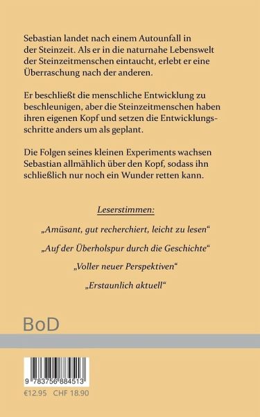 Sebastian landet nach einem Autounfall in der Steinzeit. Als er in die naturnahe Lebenswelt der Steinzeitmenschen eintaucht, erlebt er eine Überraschung nach der anderen.Er beschließt die menschliche Entwicklung zu beschleunigen, aber die Steinzeitmenschen haben ihren eigenen Kopf und setzen die Entwicklungsschritte anders um als geplant.Die Folgen seines kleinen Experiments wachsen Sebastian allmählich über den Kopf, sodass ihn schließlich nur noch ein Wunder retten kann.