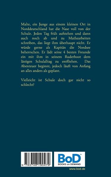 Malte, ein Junge aus einem kleinen Ort in Norddeutschland hat die Nase voll von der Schule. Jeden Tag früh aufstehen und dann auch noch ab und zu Mathearbeiten schreiben, das liegt ihm überhaupt nicht. Er würde gerne als Kapitän die Nordsee beherrschen. Er lädt seine 4 besten Freunde ein mit ihm in seinem Ruderboot dem lästigen Schulalltag zu entfliehen. Das Abenteuer beginnt, jedoch läuft von Anfang an alles anders als geplant. Vielleicht ist Schule doch gar nicht so schlecht?