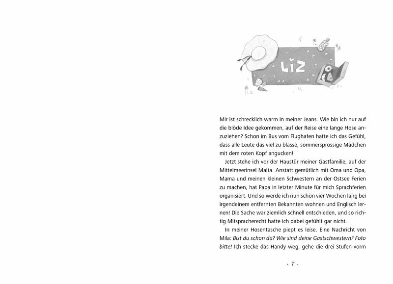 Dabei gefiel mir am besten Liz , die alleine nach Malta zu Verwandten reist um dort Englisch zu lernen . Die Familie und deren Freunde sind alle nett. Sie verbringen viel Zeit am Meer und es entwickelt sich eine erste Liebe.