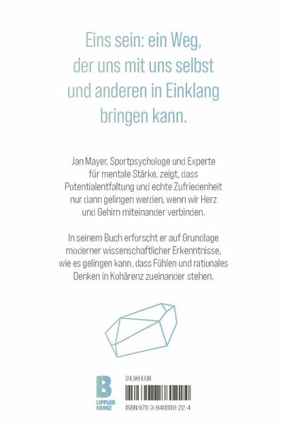 Eins sein: ein Weg, der uns mit uns selbst und anderen in Einklang bringen kann. Jan Mayer, Sportpsychologe und Experte für mentale Stärke, zeigt, dass Potentialentfaltung und echte Zufriedenheit nur dann gelingen werden, wenn wir Herz und Gehirn miteinander verbinden. In seinem Buch erforscht er auf Grundlage moderner wissenschaftlicher Erkenntnisse, wie es gelingen kann, dass Fühlen und rationales Denken in Kohärenz zueinander stehen.