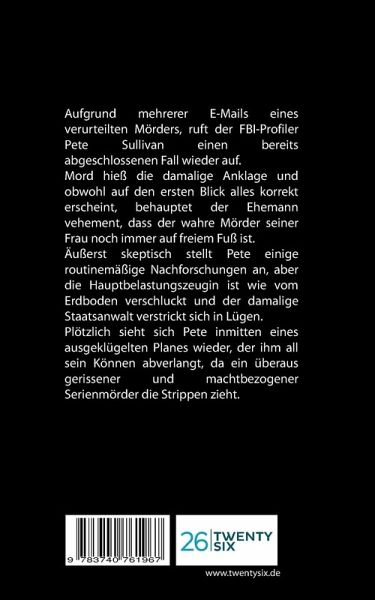 Aufgrund mehrerer E-Mails eines verurteilten Mörders, ruft der FBI-Profiler Pete Sullivan einen bereits abgeschlossenen Fall wieder auf. Mord hieß die damalige Anklage und obwohl auf den ersten Blick alles korrekt erscheint, behauptet der Ehemann vehement, dass der wahre Mörder seiner Frau noch immer auf freiem Fuß ist.Äußerst skeptisch stellt Pete einige routinemäßige Nachforschungen an, aber die damalige Hauptbelastungszeugin ist wie von Erdboden verschluckt und der zuständige Staatsanwalt verstrickt sich in Lügen.Plötzlich sieht sich Pete inmitten eines ausgeklügelten Planes wieder, der ihm all sein Können abverlangt, da ein überaus gerissener und machtbezogener Serienmörder die Strippen zieht.