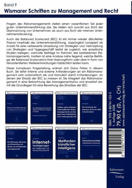 Dieser komplexen Fragestellung widmet sich Dana Peters in diesem Buch. Sie leitet interne und externe Anforderungen an ein Risikomanagement sehr systematisch ab und formuliert damit Anforderungen, an denen der Einsatz der BSC zu messen ist. Sie integriert das Risikomanagement in eine Betrachtung des Managementzyklus und erweitert damit die Grundlagen für eine Bewertung des Einsatzes der BSC.