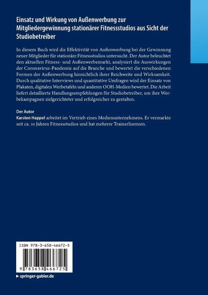 In diesem Buch wird die Effektivität von Außenwerbung bei der Gewinnung neuer Mitglieder für stationäre Fitnessstudios untersucht. Der Autor beleuchtet den aktuellen Fitness- und Außenwerbemarkt, analysiert die Auswirkungen der Coronavirus-Pandemie auf die Branche und bewertet die verschiedenen Formen der Außenwerbung hinsichtlich ihrer Reichweite und Wirksamkeit. Durch qualitative Interviews und quantitative Umfragen wird der Einsatz von Plakaten, digitalen Werbetafeln und anderen OOH-Medien bewertet. Die Arbeit liefert detaillierte Handlungsempfehlungen für Studiobetreiber, um ihre Werbekampagnen zielgerichteter und erfolgreicher zu gestalten.