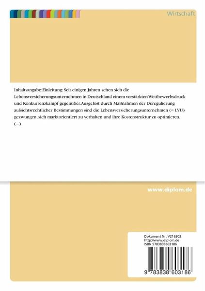 Seit einigen Jahren sehen sich die Lebensversicherungsunternehmen in Deutschland einem verstärkten Wettbewerbsdruck und Konkurrenzkampf gegenüber. Ausgelöst durch Maßnahmen der Deregulierung aufsichtsrechtlicher Bestimmungen sind die Lebensversicherungsunternehmen (= LVU) gezwungen, sich marktorientiert zu verhalten und ihre Kostenstruktur zu optimieren. Die Öffnung nationaler Grenzen, das Drängen ausländischer Versicherungsunternehmen auf den deutschen Markt und die Zusammenführung des europäischen Marktes verstärkt den Druck auf die LVU um so mehr.
