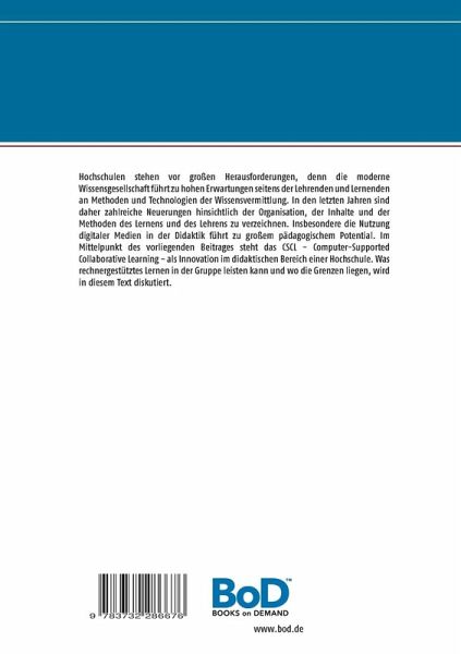 Hochschulen stehen vor großen Herausforderungen, denn die moderne Wissensgesellschaft führt zu hohen Erwartungen seitens der Lehrenden und Lernenden an Methoden und Technologien der Wissensvermittlung. In den letzten Jahren sind daher zahlreiche Neuerungen hinsichtlich der Organisation, der Inhalte und der Methoden des Lernens und des Lehrens zu verzeichnen. Insbesondere die Nutzung digitaler Medien in der Didaktik führt zu großem pädagogischem Potential. Im Mittelpunkt des vorliegenden Beitrages steht das CSCL - Computer-Supported Collaborative Learning - als Innovation im didaktischen Bereich einer Hochschule. Was rechnergestütztes Lernen in der Gruppe leisten kann und wo die Grenzen liegen, wird in diesem Text diskutiert.