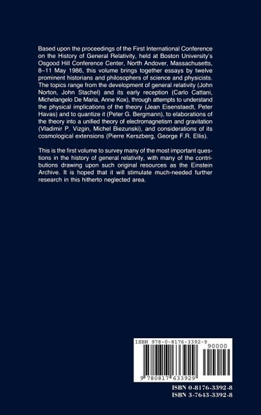 Based upon the proceedings of the First International Conference on the History of General Relativity, held at Boston University's Osgood Hill Conference Center, North Andover, Massachusetts, 8-11 May 1986, this volume brings together essays by twelve prominent historians and philosophers of science and physicists. The topics range from the development of general relativity (John Norton, John Stachel) and its early reception (Carlo Cattani, Michelangelo De Maria, Anne Kox), through attempts to understand the physical implications of the theory (Jean Eisenstaedt, Peter Havas) and to quantize it (Peter G. Bergmann), to elaborations of the theory into a unified theory of electromagnetism and gravitation (Vladimir P. Vizgin, Michel Biezunski), and considerations of its cosmological extensions (Pierre Kerszberg, George F.R. Ellis).