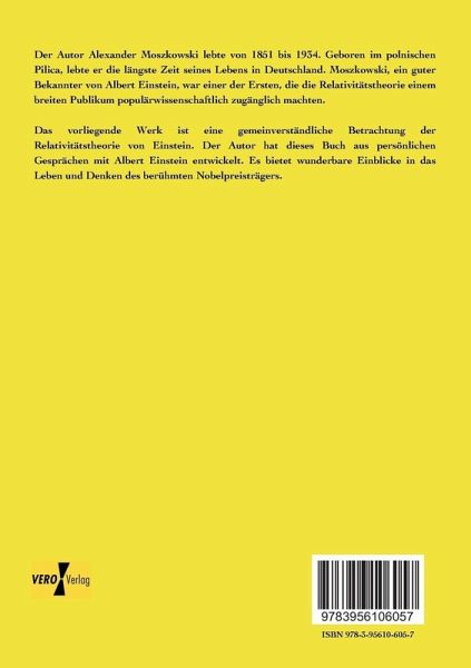Der Autor Alexander Moszkowski lebte von 1851 bis 1934. Geboren im polnischen Pilica, lebte er die längste Zeit seines Lebens in Deutschland. Moszkowski, ein guter Bekannter von Albert Einstein, war einer der Ersten, die die Relativitätstheorie einem breiten Publikum populärwissenschaftlich zugänglich machten.