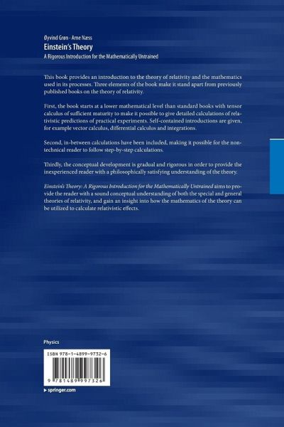 "Einstein's Theory fits in an unusual place for introductory books on the topic. ... this work reaches the mathematical, theoretical, and conceptual understanding of a graduate course, assuming just basic algebraic skills. ... this is a rare book that can take the motivated reader with an elementary algebra background to a rigorous understanding of general relativity. Summing Up: Recommended. Lower-division undergraduates and general readers." (E. Kincanon, Choice, Vol. 49 (9), May, 2012)