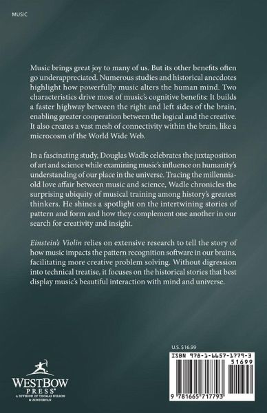 Music brings great joy to many of us. But its other benefits often go underappreciated. Numerous studies and historical anecdotes highlight how powerfully music alters the human mind. Two characteristics drive most of music's cognitive benefits: It builds a faster highway between the right and left sides of the brain, enabling greater cooperation between the logical and the creative. It also creates a vast mesh of connectivity within the brain, like a microcosm of the World Wide Web. In a fascinating study, Douglas Wadle celebrates the juxtaposition of art and science while examining music's influence on humanity's understanding of our place in the universe. Tracing the millennia-old love affair between music and science, Wadle chronicles the surprising ubiquity of musical training among history's greatest thinkers. He shines a spotlight on the intertwining stories of pattern and form and how they complement one another in our search for creativity and insight. Einstein's Violin relies on extensive research to tell the story of how music impacts the pattern recognition software in our brains, facilitating more creative problem solving. Without digression into technical treatise, it focuses on the historical stories that best display music's beautiful interaction with mind and universe.