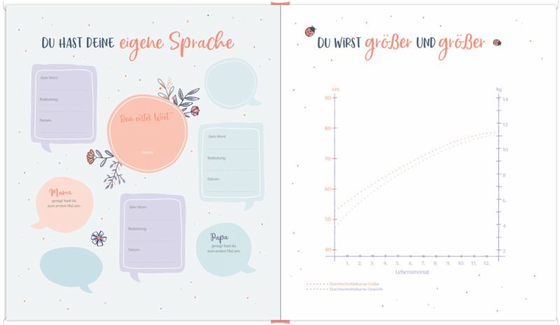 Auf 64 liebevoll gestalteten Seiten können Sie die kleinen und großen Abenteuer, wichtige Daten und die bedeutendsten Entwicklungsschritte festhalten. So entsteht ein einmaliger Erinnerungsschatz für Ihr Kind.