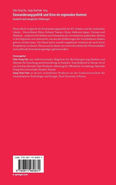 Einleitung.- Eine Studie zur Migrationspolitik in Japan.- Politische Rechte von Einwanderern in Korea.- Hat Chinas Soft Power die Jugend Taiwans angelockt? Preliminary Evidence for Overseas Employment.- The Nexus between Foreign Labor Policy and Human Trafficking in Taiwan.- Labour Immigration Policy in Vietnam.- Thailand Immigrant Policy: Herausforderung und Chance vor und nach der ASEANISIERUNG.- Die Herausforderung der Einwanderung nach Europa.- Die Migrationspolitik Osteuropas: Der Fall von Polen und Ungarn: Die Reaktion der deutschen Parteien auf die Flüchtlingskrise 2015: Eine Langzeitanalyse der Dynamik der Parteipositionierung.- Die Auswirkungen der EU-Einwanderungspolitik auf die normative Macht in Europa.- Die Gestaltung der Einwanderungspolitik in den neuen EU-Mitgliedstaaten: der Fall der estnischen Asylpolitik.