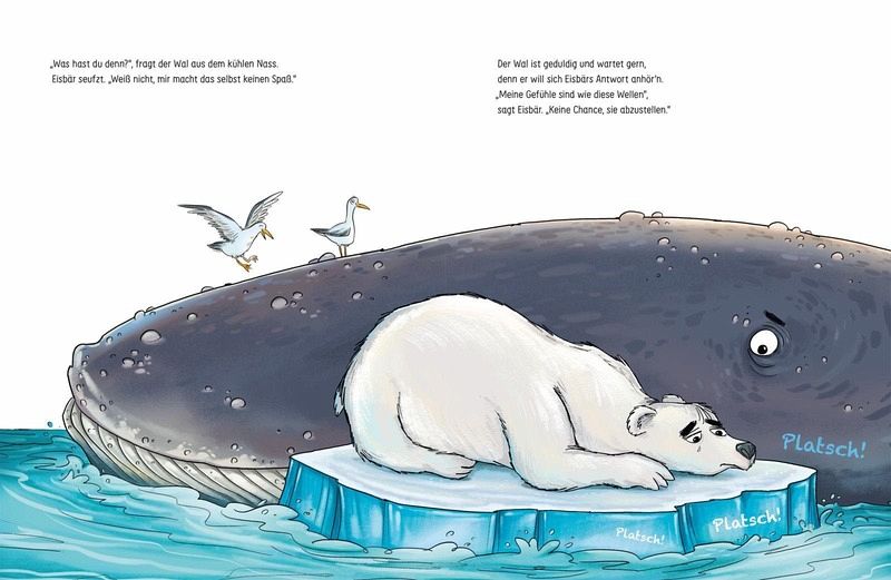 Eisbär ist unglücklich. Irgendwie ist er so dünnhäutig und seine Gefühle überwältigen ihn immerzu. Wenn die Dickschnabellummen Radau machen, ist ihm das viel zu laut. Der Sonnenuntergang löst sofort Tränen aus, weil er einfach so schön ist. Die Größe des Wals macht dem Eisbären Angst - obwohl Eisbär weiß, dass er sich nicht fürchten muss, fühlt er doch anders.