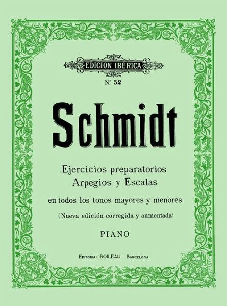 Ejercicios preparatorios, arpegios y escalas en todos los tonos mayores y menores para obtener la independencia e igualdad de los dedos. Nueva edición corregida y aumentada. Dificultad elemental-media.