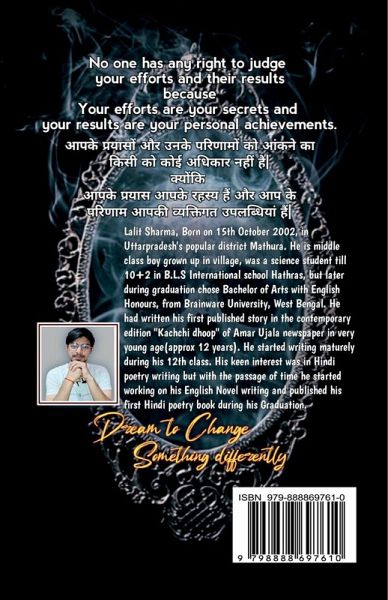 This book contains 10 best poetry of author which are cunningly representing the reality of life. Speciality of this collection is that non hindi readers can also read it as it is written in hinglish language with explanation too. All poems will lead you for your future and will also make you mature to understand the consequences of your actions. you will definitely relate every single word of hindi poems.