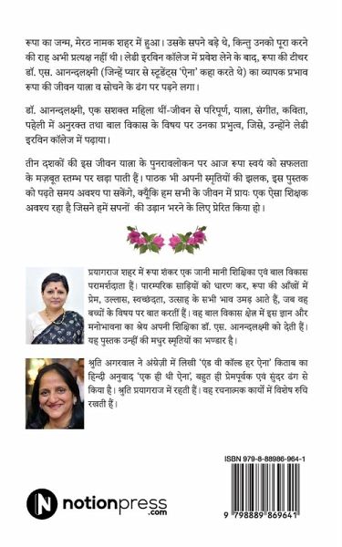 Roopa grew up hearing people murmur she is short. She had big dreams, but the path to tread upon them did not seem in sight. A woman who is passionately in love with life, music, poetry, crosswords, travel, and of course Child Development - the subject she has mastered and teaches at Lady Irwin College, Dr S Anandalakshmy profoundly influences Roopa by giving wings to her dreams. As Roopa stands to look back, three decades later, on her journey, career, and life, she knows... she stands tall! Through this book, as she relives her mentor and guide, the reader, while turning the pages of this book, is bound to get a glimpse of their own memories... A beautifully written book translated in Hindi by Shruti Agarwal