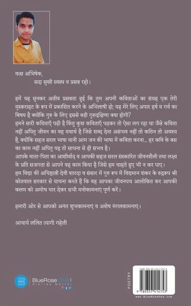 "Ek Teri mushkurahat" is the first book of 'Abhishek Vyas', Prior to this he co-authored two books. "Ek Teri Muskurat" is a collection of poems in which thoughts are written in the form of Geet, Ghazal, Poem, Nazm, Shayari etc. Some of these thoughts are imaginary and some are real. I hope you like these thoughts. In these thoughts, at least some thoughts will be such that you will feel yourself connected.