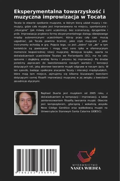 Tocata to otwarte spotkanie muzyczne, w którym bior¿ udziä muzycy i nie-muzycy, gdzie cäa muzyka jest improwizowana na miejscu, spontanicznie i "intuicyjnie" (jak mówi¿ sami uczestnicy), bez scenariuszy, dyrygentów i prób. Improwizacja przybiera form¿ eksperymentalnego dialogu d¿wi¿kowego mi¿dzy autonomicznymi uczestnikami, którzy przez cäy czas musz¿ uzgadniä, jak Tocata powinna brzmie¿, jakie style muzyczne i jakie instrumenty wchodz¿ w gr¿. Poj¿cia tego, co jest "dobre" lub "z¿e" w tym kontek¿cie s¿ zawieszone i mog¿ mie¿ sens tylko w efemerycznym momencie bezpo¿redniej relacji muzycznej. Niniejsza ksi¿¿ka, oparta na do¿wiadczeniach uczestników Tocatas we Florianópolis (SC), ma na celu opisanie i dog¿¿bn¿ analiz¿ formy i procesu tej improwizacji. Po drodze jeste¿my zapraszani do kwestionowania naszych warto¿ci i koncepcji dotycz¿cych roli, jak¿ zbiorowe tworzenie muzyki odgrywa w naszym ¿yciu. W ten sposób, badaj¿c spo¿eczne znaczenie Tocaty i interakcji mi¿dzyludzkich, które maj¿ tam miejsce, zajmujemy si¿ kilkoma kluczowymi kwestiami dotycz¿cymi samej filozofii improwizacji muzycznej w jej zwi¿zku z kwestiami zasadniczo etycznymi.