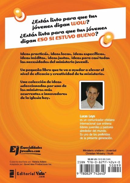 ¿¿Est¿¿s listo para que tus j¿¿venes digan WOW? ¿¿Est¿¿s lista para que tus j¿¿venes digan ESO S¿¿ ESTUVO BUENO?Ideas pr¿¿cticas, ideas locas, ideas espec¿¿ficas, ideas in¿¿ditas, ideas justas, ideas para casi todas las necesidades del ministerio juvenil. Un peque¿¿o libro que te va a ayudar a elevar el nivel de eficacia y creatividad de tu ministerio.Una colecci¿¿n de ideas seleccionadas por uno de los ministros m¿¿s ocurrentes e innovadores de la iglesia hoy.