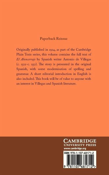 Originally published in 1924, as part of the Cambridge Plain Texts series, this volume contains the full text of El abencerraje by Spanish writer Antonio de Villegas (c.1522-c.1551). The story is presented in the original Spanish, with some modernisation of spelling and grammar. A short editorial introduction in English is also included. This book will be of value to anyone with an interest in Villegas and Spanish literature.