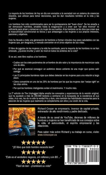 El Alfa Liberado está disponible por primera vez como libro de tapa dura. Impreso en papel más grueso y protegido por una resistente tapa dura, esta edición es el regalo perfecto para hacer llegar a alguien que quieres que persiga la excelencia en su vida. ¿¿La mayoría de los hombres de hoy en día son enviados a la sociedad con un sistema de creencias obsoleto, que utilizan para tomar decisiones, que les dan resultados terribles en la vida y las mujeres. Los hombres han sido condicionados para ser la quintaesencia del "buen chico". Se les enseña a ser demasiado humildes, amables hasta la exageración y a creer que "ser ellos mismos" es suficiente para atraer y conservar a la mujer de sus sueños. A los hombres se les dice que crean que la masculinidad convencional es tóxica y que antepongan a las mujeres a sus propios intereses, pasiones y objetivos. Esto ha llevado a toda una generación de hombres a formar vínculos muy poco saludables con las mujeres que, por desgracia, a menudo convierten en el único objetivo de sus vidas. El libro de jugadas de las mujeres y la vida ha cambiado, pero la mayoría de los hombres no se han enterado. ¿Quieres triunfar y subir de nivel en todos los ámbitos de tu vida? Si es así, este libro explica a los hombres Cuáles son los siete parámetros de un hombre de alto valor y la importancia de maximizar cada uno de ellos. Por qué es esencial conseguir un auténtico deseo ardiente de una mujer que quiera salir contigo Las 21 principales banderas rojas que debes detectar en las mujeres para una relación a largo plazo. Cómo convertirte en uno de los 20% de hombres por los que las mujeres dan "swipe right" en las citas online. Por qué los hombres inteligentes evitan el matrimonio. Y mucho más. La 2ª edición de The Unplugged Alpha amplía los conceptos y las experiencias que se ofrecen en la versión original, que ha ayudado a más de 200.000 lectores a centrarse en la búsqueda de la excelencia, para que ellos también puedan vivir su mejor vida, y les proporciona las herramientas y la mentalidad necesarias para elegir a la mujer que realmente les complementa a ellos y a su visión de la vida.