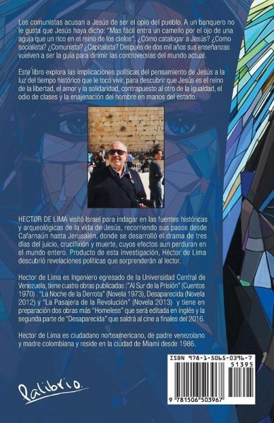 Los comunistas acusan a Jesús de ser el opio del pueblo. A un banquero no le gusta que Jesús haya dicho: "Mas fácil entra un camello por el ojo de una aguja que un rico en el reino de los cielos". ¿Cómo catalogar a Jesús? ¿Como socialista? ¿Comunista? ¿Capitalista? Después de dos mil años sus enseñanzas vuelven a ser la guía para dirimir las controversias del mundo actual. Este libro explora las implicaciones políticas del pensamiento de Jesús a la luz del tiempo histórico que le tocó vivir, para descubrir que Jesús es el reino de la libertad, el amor y la solidaridad, contrapuesto al otro de la igualdad, el odio de clases y la enajenación del hombre en manos del estado.