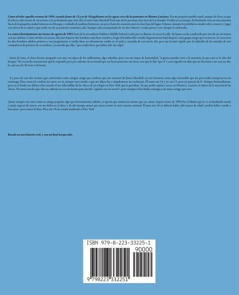 Como olvidar aquellos veranos de 1994, cuando James de 13 y yo de 10 jugábamos en las aguas cerca de los pantanos en Houma Luisiana. Era mi pequeño pueblo natal, aunque de él no, ya que él solía ir cada verano de vacaciones con su bisabuelo que vivía ahí; el señor Sam Marshall Ford una de las personas más ricas de Los Estados Unidos en su tiempo. Su bisabuelo vivía en una mansión fuera de la pequeña ciudad inmersa en el bosque y rodeado de jardines hermosos, un poco fuera de contraste para la clase baja del lugar. A James, siempre le prohibió su madre salir a conocer y jugar con chicos de su edad ya que nadie era de su posición económica ahí. Siempre salía acompañado de sus dos 'niñeros' a todas partes y eso siempre le molestaba. Lo conocí fortuitamente un viernes de agosto de 1993 fuera de la secundaria Oaklawn Middle School y todo por no fijarme al cruzar la calle. Su lujoso coche conducido por uno de sus sirvientes casi me embiste. Como olvidar esa escena, del auto bajaron dos hombres muy bien vestidos y luego el hombrecillo vestido elegantemente bajó después; muy guapo tengo que reconocer. Se acercaron los dos hombres adultos primero y me preguntaron si estaba bien, yo obviamente estaba en el suelo y asustada de casi morir ahí, pero me levanté rápido por el embrollo de las miradas de mis compañeros de primero de secundaria, y recuerdo que dije: "que estaba bien, que había sido mi culpa". Antes de irme, el chico bonito preguntó con una voz típica de los millonarios, algo soberbio, pero con un toque de honestidad: "si gustas puedes venir a la mansión, la que está en lo alto del bosque". No recuerdo exactamente qué le respondí, pero por zafarme de su mirada que me hacía ponerme nerviosa, creo que le dije "que sí" y acto seguido me dijo que me llevarían a mi casa ese día, lo cual accedí. El resto es historia. Lo poco de esos dos veranos que convivimos como amigos, tengo que confesar que me enamoré de James Marshall, era tan hermoso, tenía algo irresistible que me provocaba mariposas en mi estómago. Pero, nunca le confesé mi amor, no sé, siempre tuve miedo a que me dijera fea o simplemente me rechazara. Él tenía casi 14 y yo casi 11, pero yo parecía de 8. Siempre bromeábamos, pero en el fondo me daban celos cuando él me solía hablar de las chicas de su colegio en New York que le gustaban. Yo que podía aspirar; crecer en Houma y casarme, lo típico de la mayoría de las chicas. No tenía mucho que ofrecer, además no era tan bonita para decirle "¿quieres ser mi novio?", pero siempre él fue lindo conmigo y mi único amigo que tuve. James siempre me trató como su amiga pequeña algo que honestamente odiaba, yo quería que sintiera lo mismo que yo; amor. Aquel verano de 1994 fue el último que le vi, su bisabuelo murió y jamás regresó de nuevo, eso me dolió en el alma, y de ahí siempre pensé que nunca tomó en serio nuestra amistad. Él para mis 16 ya debería haber sido mayor de edad y podría haber venido a buscarme: pero nunca lo hizo. Para mis 18 me estaba mudando a New York Basada en una historia real, y con un final inesperado.