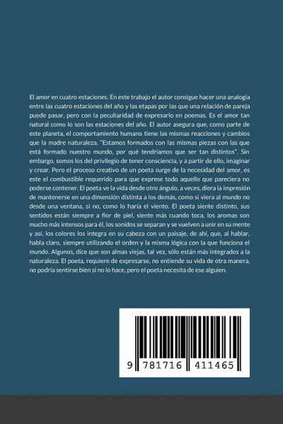 En este trabajo el autor consigue hacer una analogía entre las cuatro estaciones del año y las etapas por las que una relación de pareja puede pasar, pero con la peculiaridad de expresarlo en poemas. Es el amor tan natural como lo son las estaciones del año. El autor asegura que, como parte de este planeta, el comportamiento humano tiene las mismas reacciones y cambios que la madre naturaleza. "Estamos formados con las mismas piezas con las que está formado nuestro mundo, por qué tendríamos que ser tan distintos".