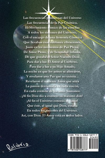 Las frecuencias primorosas del Universo Las frecuencias de la Paz Cósmica, El Movimiento rítmico de las estrellas A todos los rincones del Universo, Con el encargo de una Armonía Cósmica Que llevaban esas sublimes vibraciones, Justo en los momentos de Paz Plena, De Amor Pleno, y de Serenidad Infinita, De que gozaba el Señor Nuestro Dios. Para dar a luz El Amor al Universo, Para dar a luz a su Hijo Amado, La noche en que los astros se alinearon, Y revelaron una Paz que no existía... Revelaron el naciente Amor que sería La pasión derramada en cada rincón, En cada corazón de los seres humanos. ¡Al fin Dios dio a conocer su máximo don! ¡Al fin el Universo conoció el Amor! Que éste, al igual que Dios, estaría En todos los rincones del Universo. Así, con Dios: El Amor está en todos lados.