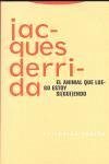 Se reúnen aquí varios trabajos, algunos inéditos, de Jacques Derrida dedicados a la cuestión de 'los animales'. Preocupación constante y casi obsesiva que procede de una exquisita sensibilidad afectiva e intelectual hacia muchos de los aspectos de la vida animal desdeñados por 'la más poderosa tradición filosófica en la que vivimos'. Esa displicencia filosófica ha ignorado sobre todo su sufrimiento. La cuestión que procede plantearse no es si los animales pueden razonar sino: '¿pueden sufrir?' (Bentham). Pregunta que adquiere una insólita relevancia teórica al hacerla converger con la necesidad de asediar los textos de una historia de la filosofía que se obstina en oponer al Hombre el resto del género animal como un conjunto indiferenciado: 'el Animal'. En este libro Derrida examina algunos de los textos de esa tradición que, desde Aristóteles hasta Heidegger, desde Descartes hasta Kant, Lévinas y Lacan, insistentemente aunque de manera teórica han maltratado a los animales. Menoscabo teórico que, como Derrida sugiere, no ha dejado de tener graves repercusiones sobre nuestro trato real con ellos.