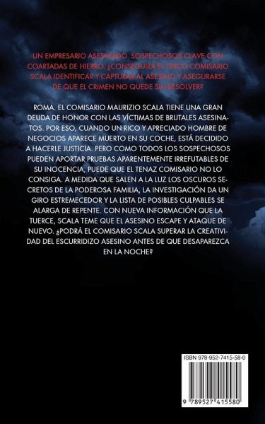 Un empresario asesinado. Sospechosos clave con coartadas de hierro. ¿Conseguirá el terco Comisario Scala identificar y capturar al asesino y asegurarse de que el crimen no quede sin resolver? Roma. El comisario Maurizio Scala tiene una gran deuda de honor con las víctimas de brutales asesinatos. Por eso, cuando un rico y apreciado hombre de negocios aparece muerto en su coche, está decidido a hacerle justicia. Pero como todos los sospechosos pueden aportar pruebas aparentemente irrefutables de su inocencia, puede que el tenaz comisario no lo consiga. A medida que salen a la luz los oscuros secretos de la poderosa familia, la investigación da un giro estremecedor y la lista de posibles culpables se alarga de repente. Con nueva información que la tuerce, Scala teme que el asesino escape y ataque de nuevo. ¿Podrá el comisario Scala superar la creatividad del escurridizo asesino antes de que desaparezca en la noche?
