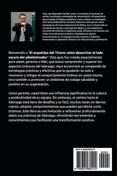Bienvenido a "El arquetipo del Tirano: cómo desactivar el lado oscuro del administrador". Esta guía fue creada especialmente para usted, gerente o líder, que busca comprender y superar los aspectos tiránicos del liderazgo. Aquí encontrará un compendio de estrategias prácticas y efectivas que lo ayudarán no solo a reconocer y mitigar el comportamiento tiránico en usted mismo, sino también a promover un ambiente de trabajo saludable y positivo en su organización. Como gerente, usted tiene una influencia significativa en la cultura y productividad de su equipo. Sin embargo, el camino hacia el liderazgo está lleno de desafíos y es fácil, muchas veces sin darnos cuenta, adoptar comportamientos que pueden percibirse como tiránicos. Este libro es una invitación a reflexionar profundamente sobre sus prácticas de liderazgo, ofreciendo herramientas y conocimientos que facilitarán una transformación positiva. A lo largo de este viaje, explorará conceptos esenciales que redefinirán su enfoque de liderazgo. Desde comprender las raíces psicológicas de los comportamientos tiránicos hasta aprender a desarrollar la empatía y la resiliencia emocional, cada capítulo está diseñado para brindar la máxima claridad y aplicabilidad. Descubrirás cómo desactivar el lado oscuro del gerente y transformarte en un líder más consciente, equilibrado y eficaz. La propuesta de este libro es actualizada y práctica, sintetizando conocimientos de diversas áreas para facilitar su aplicación en la vida cotidiana. Creemos que al comprender y cambiar los aspectos oscuros del liderazgo, no sólo mejorará su desempeño como líder, sino que también impactará positivamente a todos los que lo rodean. Tuyo sinceramente Reginaldo Osnildo