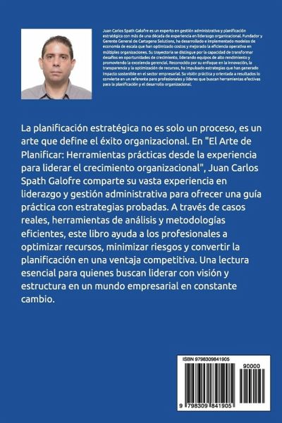 El Arte de Planificar: Herramientas prácticas desde la experiencia para liderar el crecimiento organizacional, es una guía práctica y estructurada que proporciona herramientas efectivas para la planificación estratégica en entornos empresariales desafiantes. Escrito por Juan Carlos Spath, un experto con más de una década de experiencia en gestión administrativa y liderazgo organizacional, este libro combina teoría y casos reales para enseñar a los profesionales cómo diseñar estrategias sólidas, optimizar recursos y liderar equipos con éxito. A través de metodologías probadas, ejemplos prácticos y herramientas descargables, este libro se convierte en una referencia indispensable para quienes buscan alcanzar la excelencia en la gestión empresarial. Ideal para líderes, gerentes y emprendedores que desean transformar la planificación estratégica en una ventaja competitiva.
