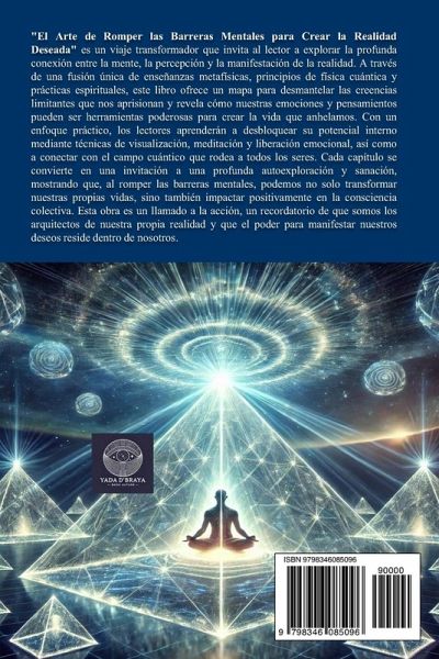 "El Arte de Romper las Barreras Mentales para Crear la Realidad Deseada" es un viaje transformador que invita al lector a explorar la profunda conexión entre la mente, la percepción y la manifestación de la realidad. A través de una fusión única de enseñanzas metafísicas, principios de física cuántica y prácticas espirituales, este libro ofrece un mapa para desmantelar las creencias limitantes que nos aprisionan y revela cómo nuestras emociones y pensamientos pueden ser herramientas poderosas para crear la vida que anhelamos. Con un enfoque práctico, los lectores aprenderán a desbloquear su potencial interno mediante técnicas de visualización, meditación y liberación emocional, así como a conectar con el campo cuántico que rodea a todos los seres. Cada capítulo se convierte en una invitación a una profunda autoexploración y sanación, mostrando que, al romper las barreras mentales, podemos no solo transformar nuestras propias vidas, sino también impactar positivamente en la consciencia colectiva. Esta obra es un llamado a la acción, un recordatorio de que somos los arquitectos de nuestra propia realidad y que el poder para manifestar nuestros deseos reside dentro de nosotros.