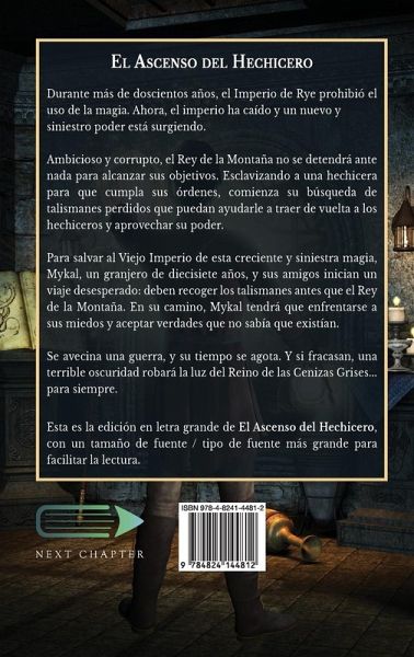Durante más de doscientos años, el Imperio de Rye prohibió el uso de la magia. Ahora, el imperio ha caído y un nuevo y siniestro poder está surgiendo. Ambicioso y corrupto, el Rey de la Montaña no se detendrá ante nada para alcanzar sus objetivos. Esclavizando a una hechicera para que cumpla sus órdenes, comienza su búsqueda de talismanes perdidos que puedan ayudarle a traer de vuelta a los hechiceros y aprovechar su poder. Para salvar al Viejo Imperio de esta creciente y siniestra magia, Mykal, un granjero de diecisiete años, y sus amigos inician un viaje desesperado: deben recoger los talismanes antes que el Rey de la Montaña. En su camino, Mykal tendrá que enfrentarse a sus miedos y aceptar verdades que no sabía que existían. Se avecina una guerra, y su tiempo se agota. Y si fracasan, una terrible oscuridad robará la luz del Reino de las Cenizas Grises... para siempre. Edición de Letra Grande