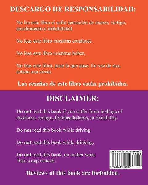 This is a silly book that demonstrates how easy it is to make someone smile, or to make them dizzy. Do not read this book while driving or drinking. Do not read this book if you suffer from feelings of dizziness, vertigo, lightheadedness, or irritability. Spanish and English.