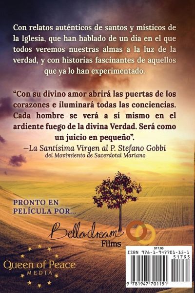 El presente best-seller ha alcanzado cotas de aclamación importantes, es cautivador y tiene, el Imprimatur de la Iglesia. Presenta al lector el conocimiento más completo sobre lo que se conoce como"El Aviso" o "la Iluminación de Conciencia" - un momento decisivo en el tiempo en el que veremos nuestras almas en el ardiente fuego de la divina Verdad Su contenido presenta historias reales sobre aquellas personas que ya lo han experimentado. Mons. Ramón C. Argüelles, Arzobispo Emérito de la Arquidiócesis Metropolitana de Lila Filipinas, dice: "Este libro debe ser ampliamente difundido, para la gloria de Dios". "Christine Watkins ha hecho un excelente trabajo, un manual inapreciable", dice Mark Mallett, Evangelizador, Autor, Músico y Compositor Católico. El Obispo Gavin Ashenden, Capellán de la Reina de Inglaterra (2008-2017), comenta en su prólogo del libro, "Lo devoré siendo incapaz de dejarlo" . . . "Para prepararse espiritualmente, este escrito será de gran ayuda informativa; es muy inspirador", dice Padre John Struzzo de la Congregación de la Santa Cruz dice: "Lo recomiendo encarecidamente". Mons. Ralph J. Chieffo, Director Nacional Espiritual de la Llama del Amor, ruega, "Léa y crea el contenido de este libro profético". El Obispo, Ashenden, comienza su prólogo con, "De vez en cuando suele caer en nuestras manos un libro particularmente poderoso para revelar el misterio y el poder del proyecto de Dios para su Iglesia de hoy, y éste, es sin duda uno de ellos. Si te preguntas si debes o no tomarte el tiempo para leerlo, permíteme recomendarte vivamente que lo hagas". Las profecías del Aviso, como se describen e ilustran en este libro, nos han llegado a través de santos y místicos, incluyendo al Beato Papa Pío IX, Santa Faustina Kowalska, la Beata Anna Maria Taigi, y la Sierva de Dios, María Esperanza. Algunas de estas luces espirituales aún están vivas, como el abad y místico, Padre Michel Rodrigue, o el estigmatista y místico, Janie Garza. El Aviso no solo justifica este enorme e inminente evento, sino que también lleva al lector a través de testimonios convincentes de aquellos que ya lo han experimentado personalmente y en contra de su voluntad. En definitiva, las profecías y testimonios de la iluminación de conciencia que encontrará en el presente libro, prometen asombrar, entretener, desafiar y preparar al lector creyente para un futuro incierto.