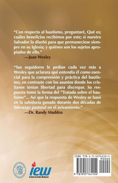 Por primera vez en español, el ensayo de Juan Wesley que deja claro su pensamiento sobre el sacramento del bautismo, y en particular la participación de niños y párvulos en el bautismo. Este tratamiento teológico y pastoral de Wesley viene acompañado por su sermón "El nuevo nacimiento," pareja clave para entender cómo se relacionan el bautismo y la nueva vida en Cristo. Se presentan también voces de la iglesia contemporánea-metodistas, nazarenos, wesleyanos-para tratar del bautismo desde nuestro contexto. Es un texto importante para pastores, laicos, teólogos, e historiadores.