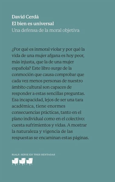 ¿Por qué es inmoral violar? ¿Por qué la vida de una mujer afgana es hoy peor, más injusta, que la de una mujer española? Por diversos motivos, hay un desconcierto moral, y ha dejado de ser fácil responder a estas preguntas. ¿Cuál es el alcance de la tolerancia y el pluralismo? ¿Por qué crece el número de quienes niegan que exista el libre albedrío? Mediante argumentos diáfanos y sirviéndose de su habitual combinación de filosofía, literatura, ciencia o historia, Cerdá construye una vigorosa defensa de la universalidad del bien y el progreso moral, invitándonos a defender con rigor la dignidad y la justicia.