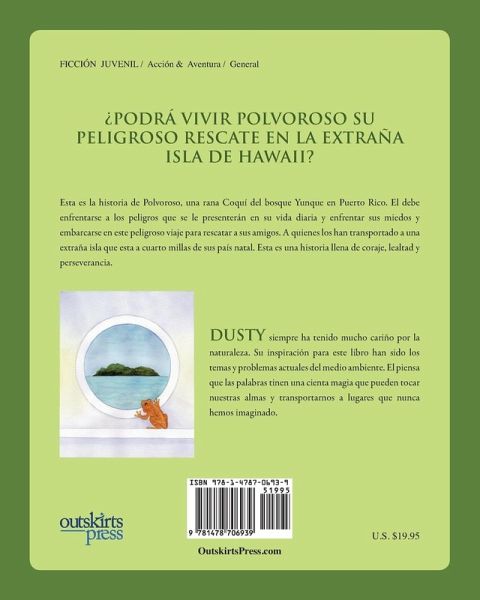 ¿PODRÁ VIVIR POLVOROSO SU PELIGROSO RESCATE EN LA EXTRAÑA ISLA DE HAWAII? Esta es la historia de Polvoroso, una rana Coquí del bosque Yunque en Puerto Rico. El debe enfrentarse a los peligros que se le presenterán en su vida diaria y enfrentar sus miedos y embarcarse en este peligroso viaje para rescatar a sus amigos. A quienes los han transportado a una extraña isla que esta a cuarto millas de sus país natal. Esta es una historia llena de coraje, lealtad y perseverancia.