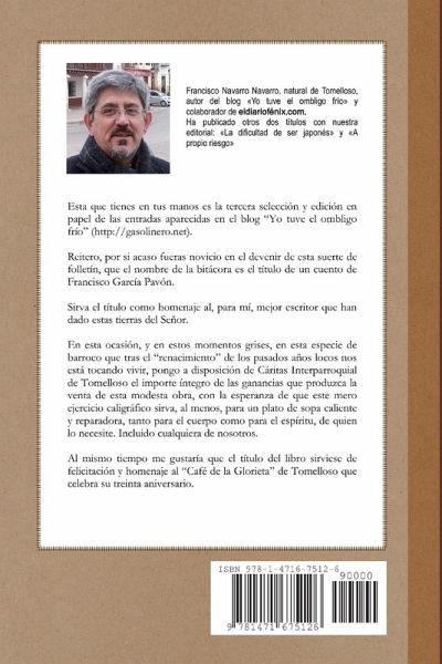 Tercera entrega de los relatos publicados en el blog "Yo tuve el ombligo frío" En esta ocasión, y en estos momentos grises, en esta especie de barroco que tras el "renacimiento" de los pasados años locos nos está tocando vivir, pongo a disposición de Cáritas Interparroquial de Tomelloso el importe íntegro de las ganancias que produzca la venta de esta modesta obra.