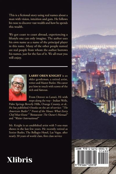 This is a fictional story using real names about a man with vision, intuition and guts. He follows his nose to discover vast wealth and how he spends this wealth. We got coast to coast abroad, experiencing a lifestyle one can only imagine. The author uses his own name as a name of the principal player in this tome. Many of the other people named are real people from whom the author borrows his names, just for the fun of it. We all trust you will enjoy.