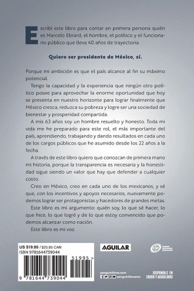 Una propuesta de gobierno enfocada en el desarrollo económico, la igualdad social, la justicia y la inclusión, el propósito esencial: analizar nuestro presente y buscar un mejor futuro. Marcelo Ebrard conoce profundamente los problemas más graves de México y el potencial de nuestro país. En este libro ofrece un análisis apasionado de nuestra situación actual en materia económica y política, lo que se necesita en cuanto a salud, industria y tecnología al mismo tiempo que comparte su extensa trayectoria en diversos cargos de representación popular las últimas décadas. El camino de México le sirve al autor para reflexionar sobre los cambios políticos más importantes de México los últimos años, los desafíos de la democracia, así como para hablar de su ideario político, explicar cómo enfrentar las crisis económicas y políticas, alentar el entendimiento entre las fuerzas de poder para el bien de México y qué acciones tomar para combatir la corrupción y la desigualdad social. Además de compartir sus logros en su amplia trayectoria política, el libro ofrece una serie de propuestas orientadas al mejoramiento de las clases menos favorecidas, insiste en la necesidad de practicar una política justa para los ciudadanos e invita a todos los sectores a trabajar por un país con mejores oportunidades para la ciudadanía.