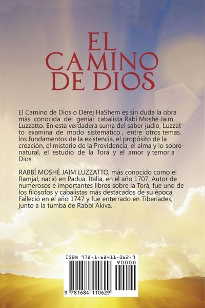 El Camino de Dios o Derej HaShem es sin duda la obra más conocida del genial cabalista Rabí Moshé Jaim Luzzatto. En esta verdadera suma del saber judío, Luzzatto examina de modo sistemático, entre otros temas, los fundamentos de la existencia, el propósito de la creación, el misterio de la Providencia, el alma y lo sobrenatural, el estudio de la Torá y el amor y temor a Dios. RABBÍ MOSHÉ JAIM LUZZATTO, más conocido como el Ramjal, nació en Padua, Italia, en el año 1707. Autor de numerosos e importantes libros sobre la Torá, fue uno de los filósofos y cabalistas más destacados de su época. Falleció en el año 1747 y fue enterrado en Tiberíades, junto a la tumba de Rabbí Akiva.