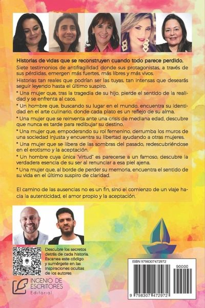 Historias de vidas que se reconstruyen cuando todo parece perdido. Siete testimonios de antifragilidad donde sus protagonistas, a través de sus pérdidas, emergen más fuertes, más libres y más vivos. Historias tan reales que podrían ser las tuyas, tan intensas que desearás seguir leyendo hasta el último suspiro. * Una mujer que, tras la tragedia de su hijo, pierde el sentido de la realidad y se enfrenta al caos. * Un hombre que, buscando su lugar en el mundo, encuentra su identidad en el arte culinario, donde cada plato es un reflejo de su alma. * Una mujer que se reinventa ante una crisis de mediana edad, descubre que nunca es tarde para redibujar su destino. * Una mujer que, empoderando su rol femenino, derrumba los muros de una sociedad injusta y encuentra su libertad ayudando a otras mujeres. * Una mujer que se libera de las sombras del pasado, redescubriéndose en el erotismo y la aceptación. * Un hombre cuya única "virtud" es parecerse a un famoso, descubre la verdadera esencia de su ser al renunciar a esa piel ajena. >El camino de las ausencias no es un fin, sino el comienzo de un viaje hacia la autenticidad, el amor propio y la aceptación.