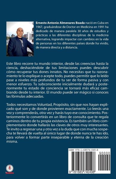 Este libro recorre tu mundo interior, desde las creencias hasta la ciencia, deshaciéndote de tus limitaciones puedes descubrir cómo recuperar tus dones innatos. No necesitas que tu razonamiento te lo explique o acepte todo, puedes permitir que lo leído pase a niveles más profundos de tu ser de forma pasiva y con menor esfuerzo. Tu subconsciente inicialmente dudará y posteriormente tu estado de conciencia se tornará más eficaz cambiando desde tu interior. El mundo puede ser mágico si conoces las fórmulas adecuadas. Todos necesitamos Voluntad, Propósito, sin que nos hayan explicado qué son y de dónde provienen exactamente. Lo leerás una vez y comprenderás, otra vez y harás tuyo ese conocimiento. Posteriormente lo convertirás en un libro de consulta que te regala caminos dentro de tu propia existencia. Es también un libro complementario donde hallarás las claves de otros muy interesantes. Te invito a regresar una y otra vez a la duda que con mucha sospecha te llevará de vuelta al único lugar de donde nunca te has ido, para volver a formar parte inseparable y eterna de la creación misma.