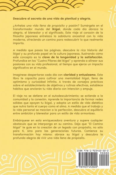 Descubre el secreto de una vida de plenitud y alegría ¿Anhelas una vida llena de propósito y pasión? Sumérgete en el transformador mundo del ikigai, donde cada día abraza la alegría, el bienestar y el significado. Este viaje al corazón de la filosofía japonesa entrelaza la sabiduría ancestral con la vida moderna, ofreciendo un camino para redescubrir lo que realmente importa. A medida que pasas las páginas, descubre la rica historia del ikigai y su profundo papel en la cultura japonesa, ilustrando cómo este concepto es la clave de la longevidad y la satisfacción. Profundice en los "Cuatro Pilares del Ikigai" y aprenda a alinear sus pasiones con su vida profesional, al tiempo que ejerce un impacto significativo en el mundo. Imagínese despertarse cada día con claridad y entusiasmo. Este libro te capacita para cultivar una mentalidad ikigai, llena de optimismo y curiosidad infinita. A través de consejos prácticos sobre el establecimiento de objetivos y rutinas efectivas, establece hábitos que anclarán tu vida diaria con intención y empuje. El viaje no se detiene en el autodescubrimiento; se extiende a la comunidad y la conexión. Aprende la importancia de formar redes sólidas que apoyen tu ikigai, y adopta un estilo de vida dietético que nutra tanto el cuerpo como el alma. A medida que el trabajo y la vida personal se mezclan a la perfección, descubra el equilibrio entre ambición y bienestar para un estilo de vida armonioso. embárquese en esta enriquecedora aventura y supere cualquier obstáculo que se interponga en su camino. Deja que "El Camino Ikigai" te guíe en la creación de un legado con propósito, no sólo para ti, sino para las generaciones futuras. Comience su transformación hoy mismo: abrace su ikigai y descubra la profunda alegría de vivir una vida llena de propósito.