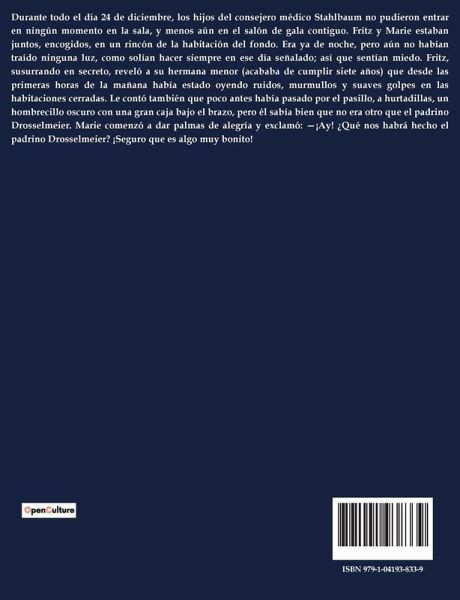 Durante todo el día 24 de diciembre, los hijos del consejero médico Stahlbaum no pudieron entrar en ningún momento en la sala, y menos aún en el salón de gala contiguo. Fritz y Marie estaban juntos, encogidos, en un rincón de la habitación del fondo. Era ya de noche, pero aún no habían traído ninguna luz, como solían hacer siempre en ese día señalado; así que sentían miedo. Fritz, susurrando en secreto, reveló a su hermana menor (acababa de cumplir siete años) que desde las primeras horas de la mañana había estado oyendo ruidos, murmullos y suaves golpes en las habitaciones cerradas. Le contó…mehr