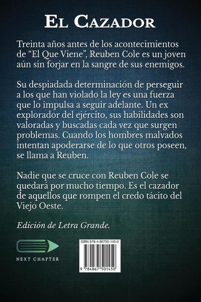 Treinta años antes de los acontecimientos de "El Que Viene", Reuben Cole es un joven aún sin forjar en la sangre de sus enemigos. Su despiadada determinación de perseguir a los que han violado la ley es una fuerza que lo impulsa a seguir adelante. Un ex explorador del ejército, sus habilidades son valoradas y buscadas cada vez que surgen problemas. Cuando los hombres malvados intentan apoderarse de lo que otros poseen, se llama a Reuben. Nadie que se cruce con Reuben Cole se quedará por mucho tiempo. Es el cazador de aquellos que rompen el credo tácito del Viejo Oeste. ¿Edición de Letra Grande