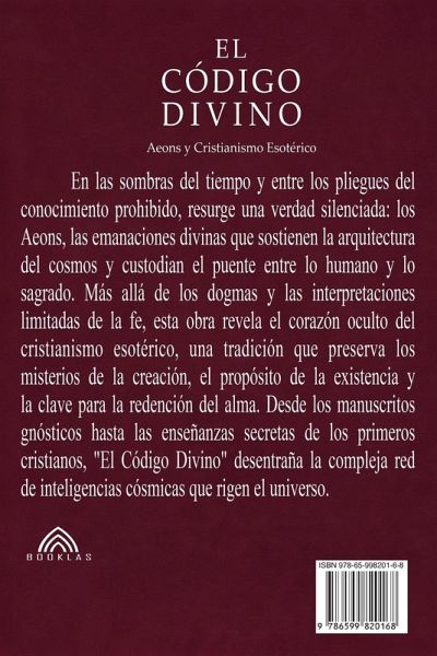 El Código DivinoAeons y Cristianismo EsotéricoMartin D. Caldwell En las sombras del tiempo y entre los pliegues del conocimiento prohibido, resurge una verdad silenciada: los Aeons, las emanaciones divinas que sostienen la arquitectura del cosmos y custodian el puente entre lo humano y lo sagrado. Más allá de los dogmas y las interpretaciones limitadas de la fe, esta obra revela el corazón oculto del cristianismo esotérico, una tradición que preserva los misterios de la creación, el propósito de la existencia y la clave para la redención del alma. Desde los manuscritos gnósticos hasta las enseñanzas secretas de los primeros cristianos, "El Código Divino" desentraña la compleja red de inteligencias cósmicas que rigen el universo. En este viaje, el lector se enfrentará a preguntas que desafían su percepción de la realidad: ¿Es Cristo un Aeon salvador cuya misión trasciende la historia convencional? ¿Cuál es el verdadero papel de Sophia en la caída del mundo material? ¿Y cómo puede el conocimiento oculto conducir al despertar de la chispa divina dentro de cada ser? Este no es solo un libro, es una llave. Una revelación que transforma. Un llamado al alma que recuerda. Quien se atreva a cruzar este umbral no volverá a ser el mismo.