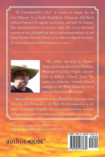 "El Centrolista2012-2015" is written to inspire Yes we Can Hispanic Si se Puede Republican, Democrat, and liberal political warriors to register, participate, and vote for human-first American politics in America today. The text in this book consists of my cyberpolitical advice and correspondence to and from President Barack Obama in our effort to dignify humanity by way of Hispanic political power as I see it.